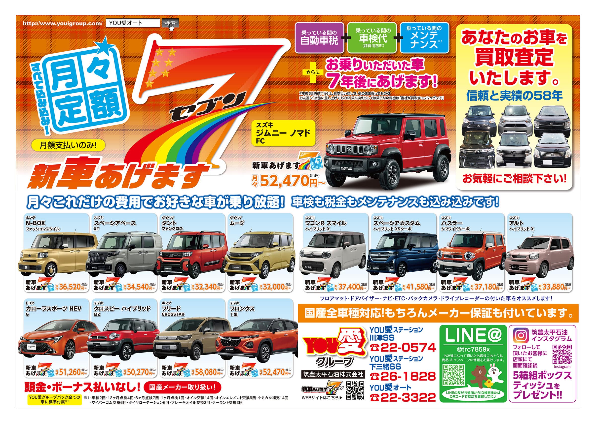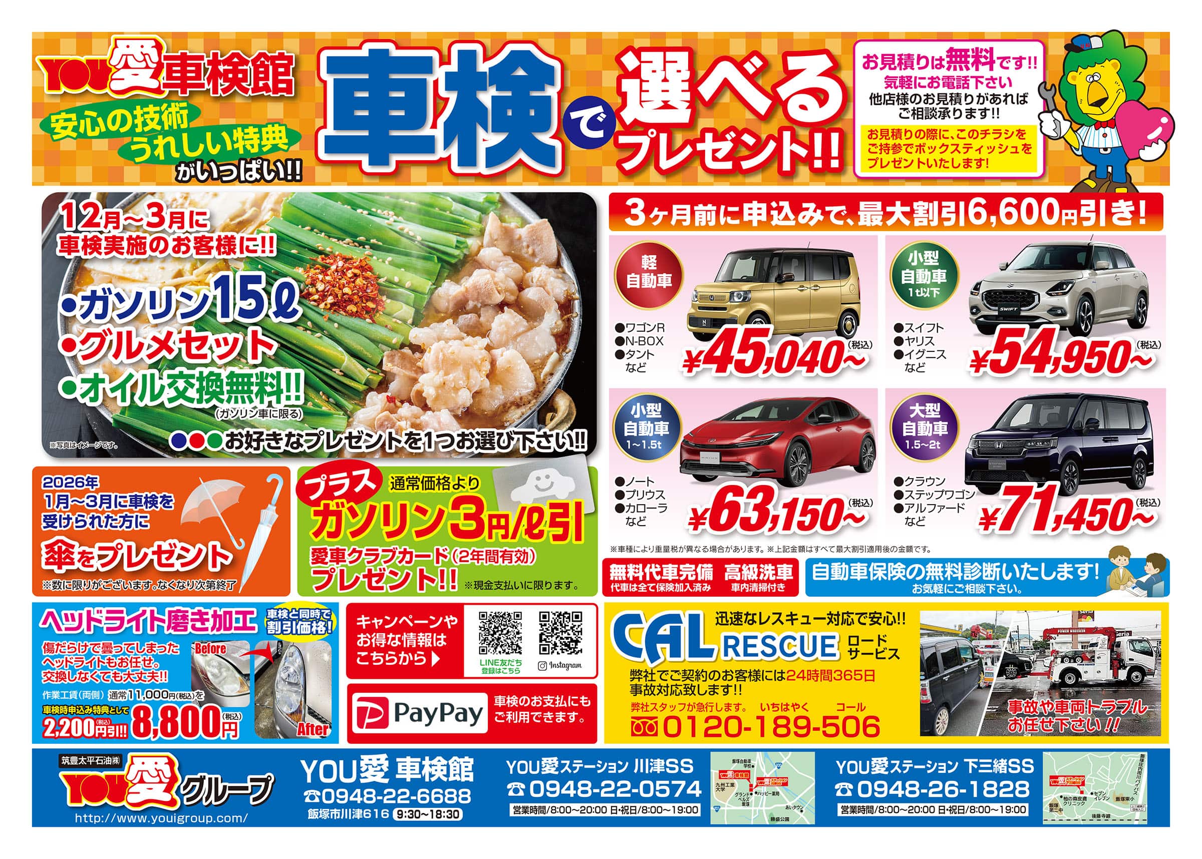 ガソリン15ℓ・グルメセット・オイル交換無料のいずれかをプレゼント!!
