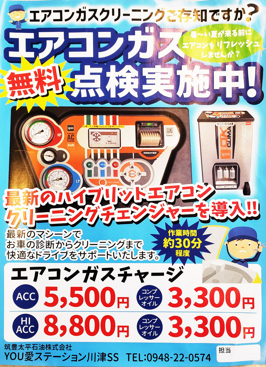 エアコンガス無料点検実施中!!